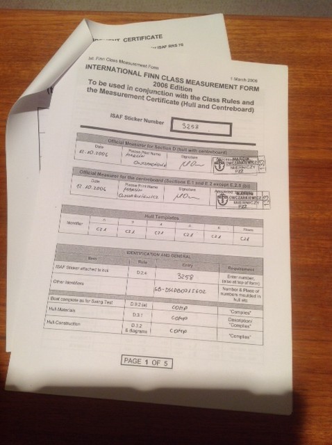 There are a number of reasons certificates are lost. Sometimes it is older boats where the paperwork has become separated many owners ago, sometimes it is carelessness or theft, and the most dramatic reason we have been given is someone’s house burning down! You need to take good care of your boat’s measurement certificate as without it, it is not a Finn and as such worth a lot less.